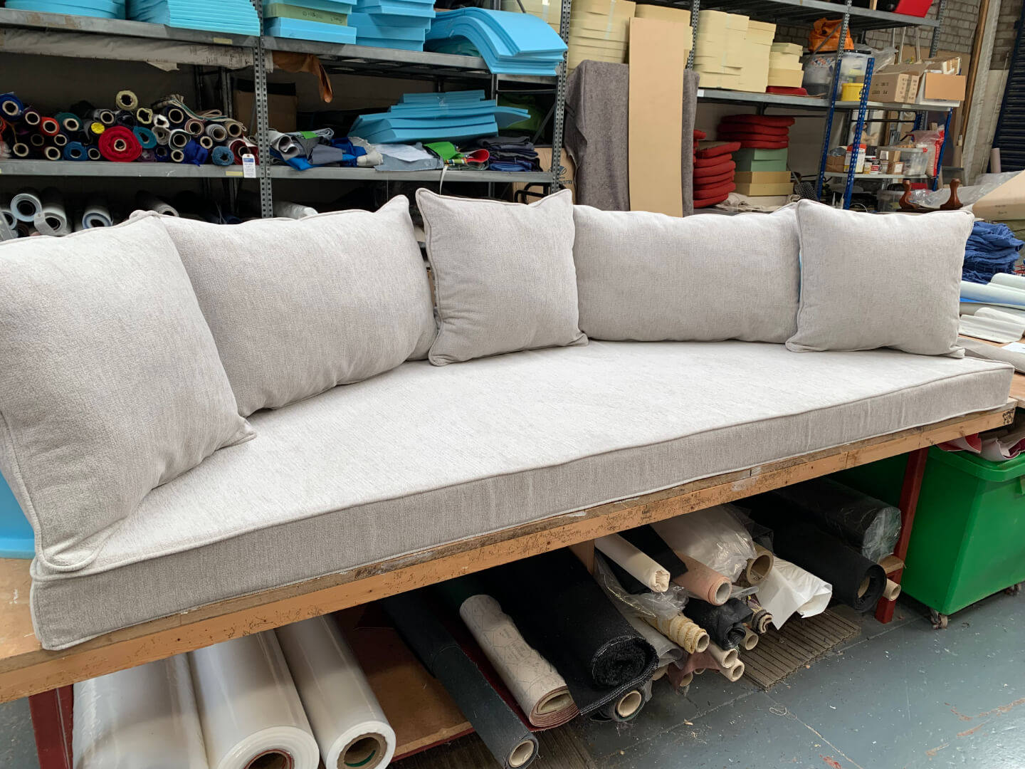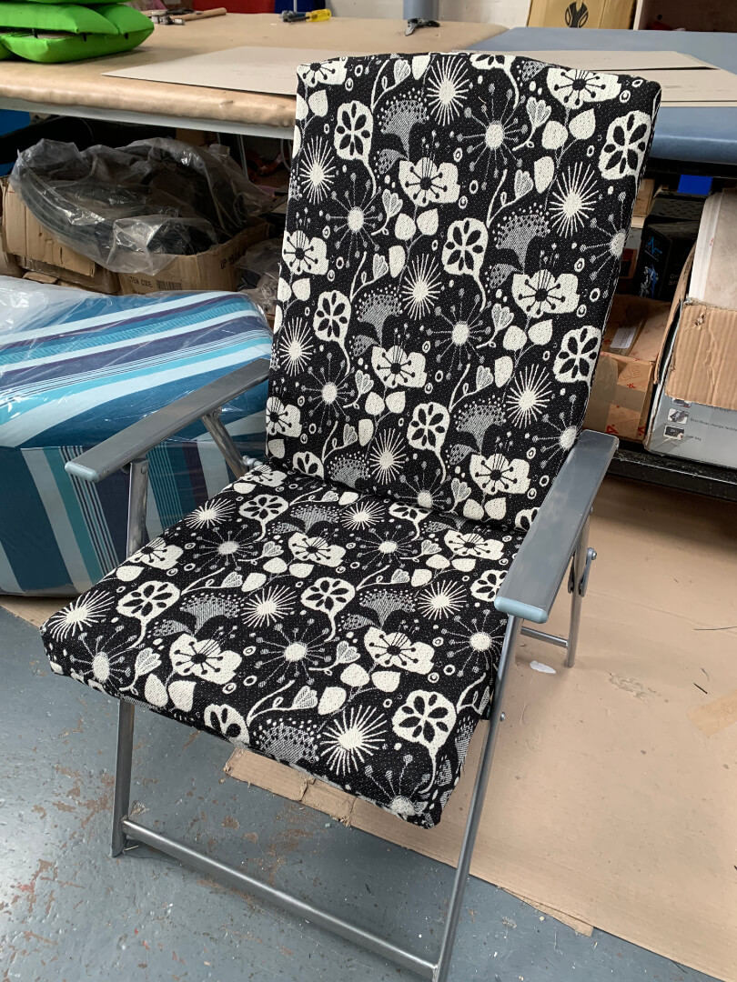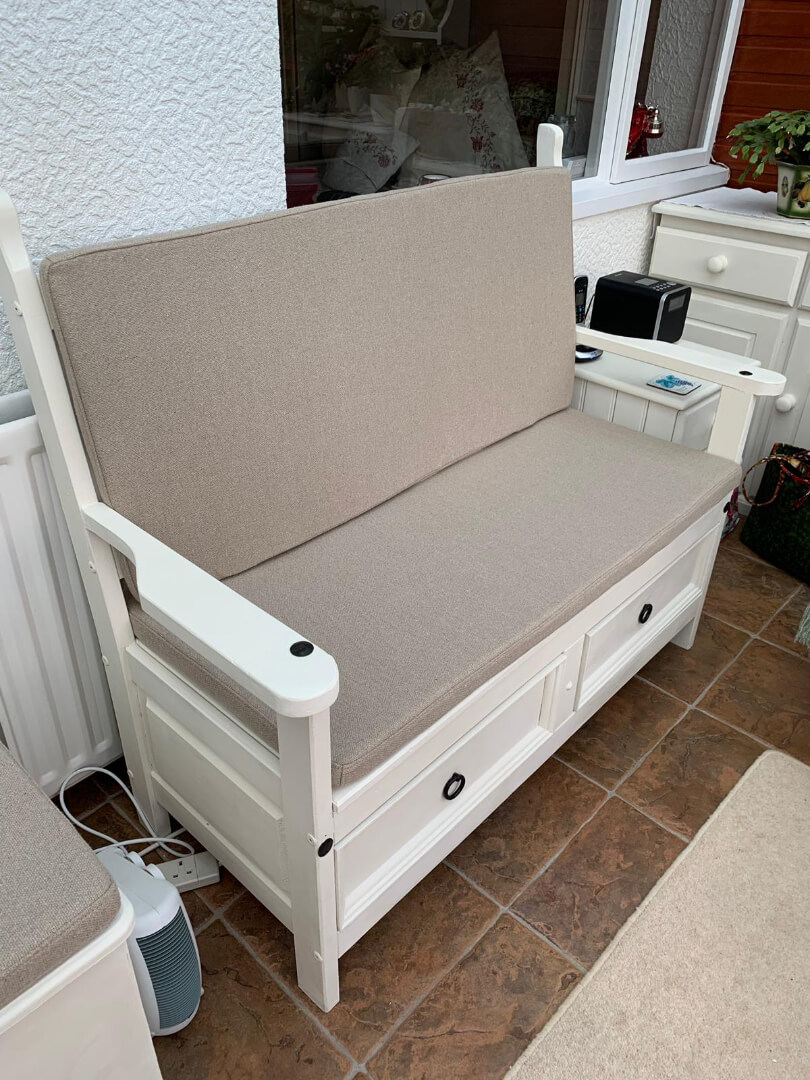 We offer more than the title suggests. From seating in the home or garden, but headboards and ottomans and caravan, camper van and boat upholstery. From fixed seating to loose cushioning we can transform tired looking upholstery to give it a new life.