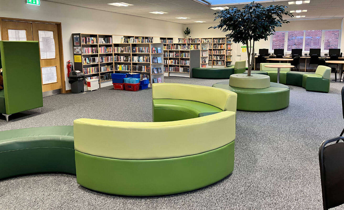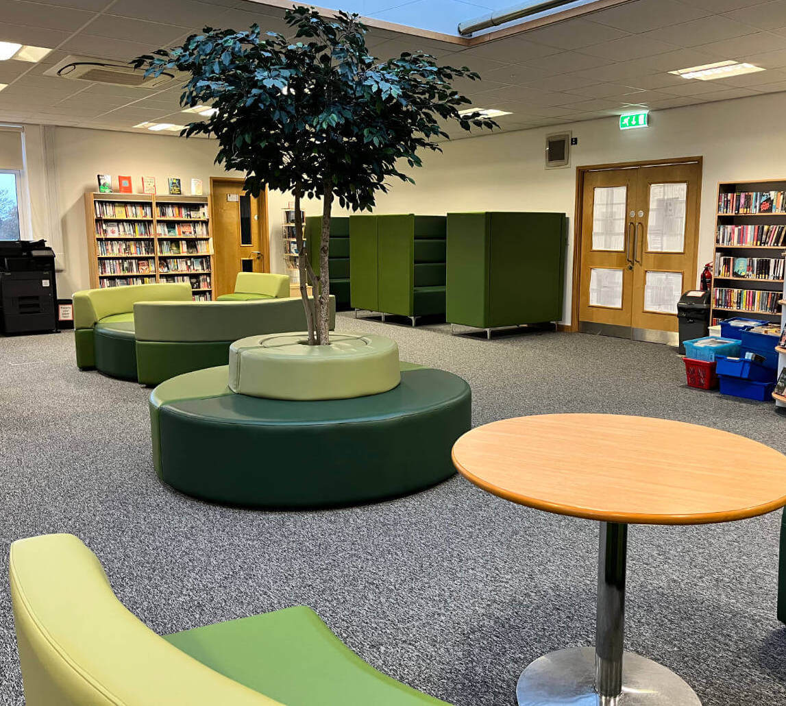 Old flowered print upholstery changed to a mixture of more contemporary greys, blues and heather colours.